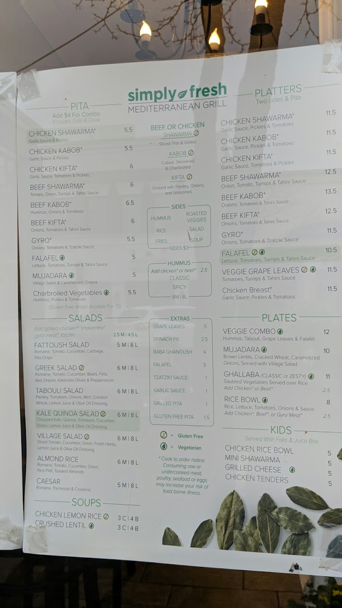 Welcome to Simply Fresh Mediterranean Grill, a hidden gem located at 838 Penniman Ave in Plymouth, MI. This delightful Mediterranean restaurant invites you to indulge in an array of authentic flavors that promise to transport your taste buds straight to the sun-drenched shores of the Mediterranean.